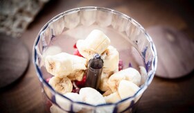 Enjoy a colorful, healthy breakfast with a hint of chocolate. The vibrant pink smoothies bowl combines fresh red berries with banana, coconut cream and chocolate shavings for a glorious start to the day.