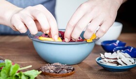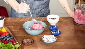 Add fresh fruits and granola to your bowl. Shave dark and/or white chocolate on top for a sweet finish.