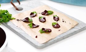 3. Freeze the uncovered leaves for at least 20 minutes, until hardened (or for around [5] minutes in a blast chiller).